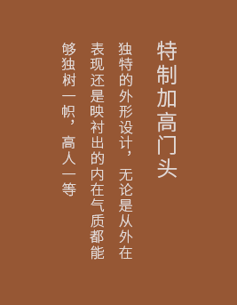 秉承中國“藏風聚福”的傳統理念,研發出特殊的設計工藝,無需更改門洞尺寸,加高門框處理,添財納吉祥、五福入豪門